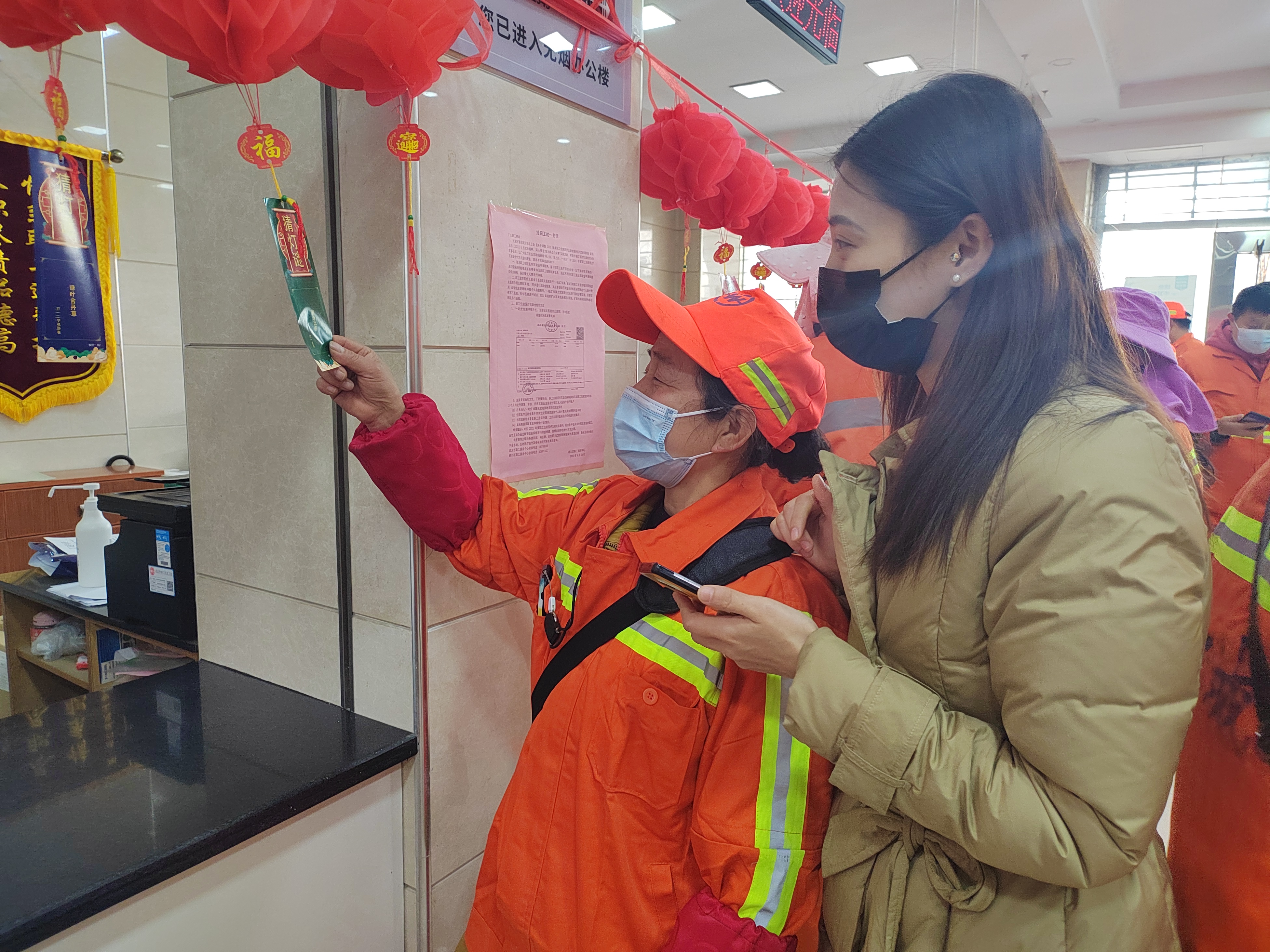 與此同時,2月3日下午,硚環公司工會負責人組織30余名一線環衛工人參加硚口區工會組織開展的“元宵暖新,樂猜燈謎”活動。燈謎涵蓋字各種類型,有易有難,趣味十足,活動現場熱烈而有序,不時傳來陣陣歡聲笑語,氣氛歡樂祥和。