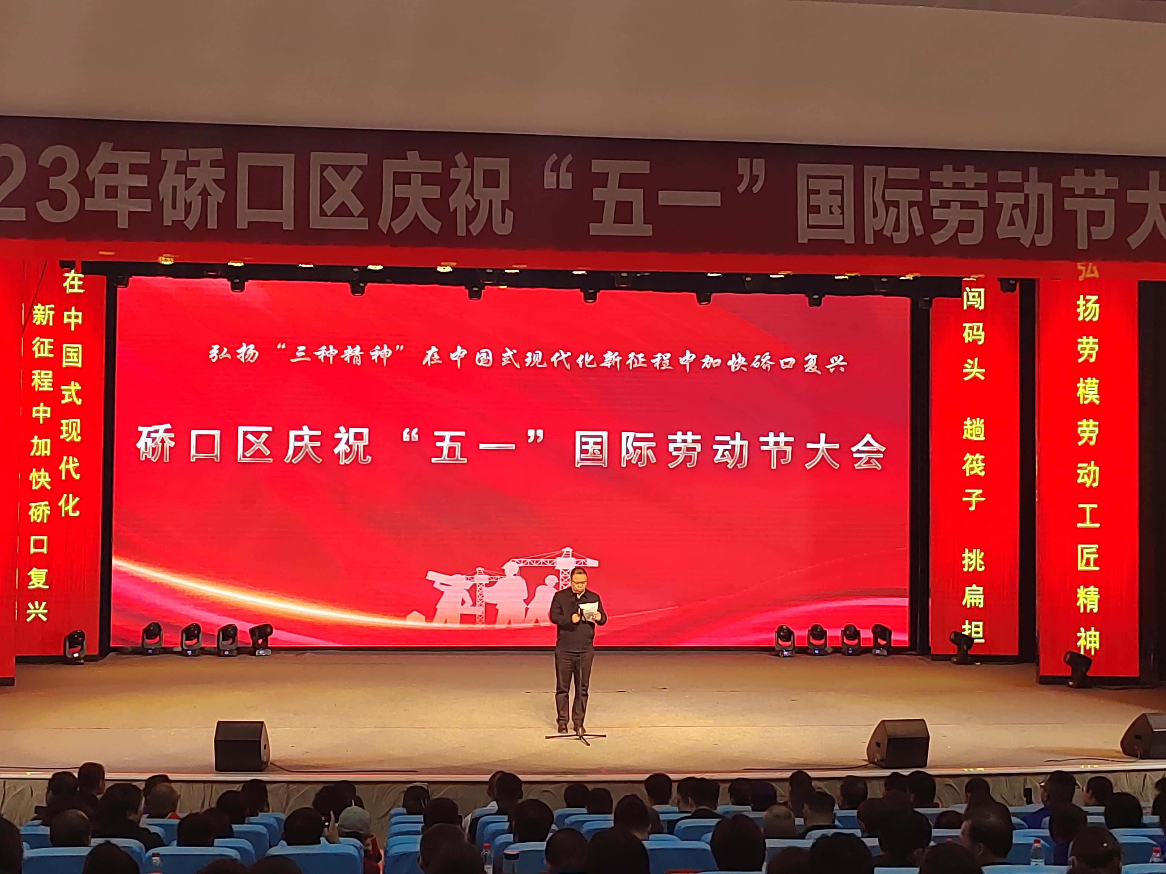 2023年4月26日下午,硚口區(qū)在武漢市第一聾啞學(xué)校召開(kāi)2023年慶祝“五一”國(guó)際勞動(dòng)節(jié)大會(huì),會(huì)議集中表彰了一批榮獲勞動(dòng)模范和工人先鋒號(hào)的個(gè)人和集體。各街道、開(kāi)發(fā)區(qū)、委局工會(huì)以及基層工會(huì)和各條戰(zhàn)線職工代表等400余人參加會(huì)議。