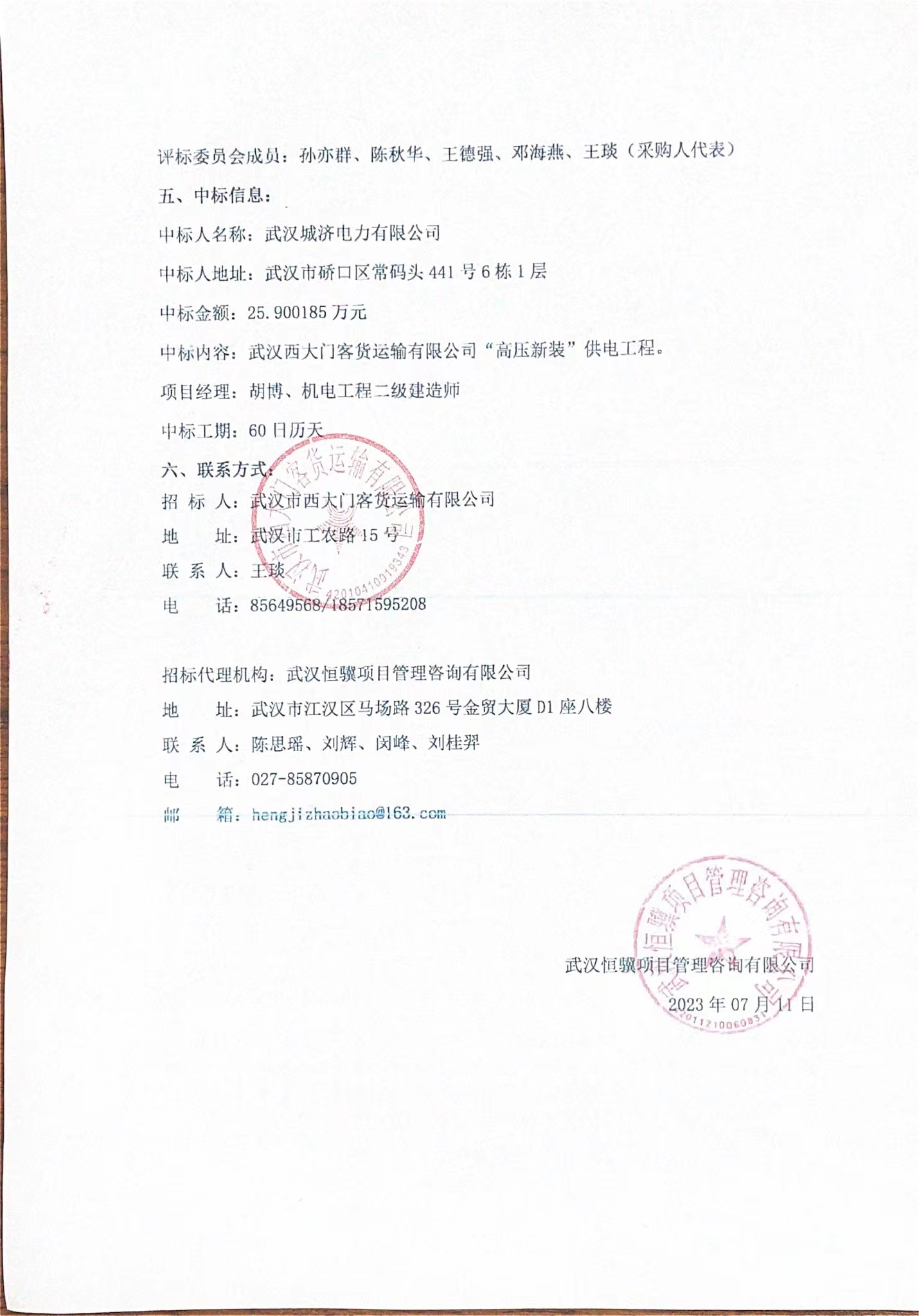 “高壓新裝”供電工程項(xiàng)目中標(biāo)結(jié)果