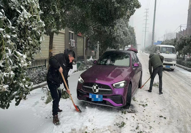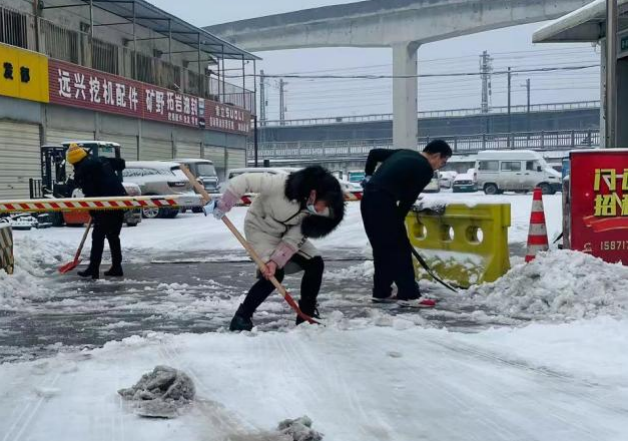硚環本部黨員干部開展了自掃門前雪活動。大家拿著鐵鍬、雪鏟、掃帚等清雪工具,自發對公司辦公樓院內及周邊等公共區域進行清理,疏通車輛進出通道,幫助拋錨車輛脫困。西大門公司動員商戶一起嚴格落實“門前三包”,共同除冰除雪,保障站內的行車出行安全,營造良好商營環境。