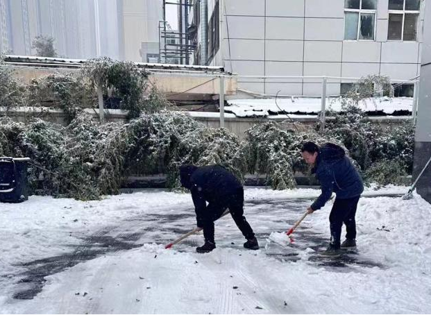 市政片區第一時間動員職工將垃圾轉運站進出口道路、坡道等區域進行人工清掃,確保進站垃圾車輛行駛運輸安全通暢,保證城市垃圾處理秩序,同時連夜調集車輛人員,協助清理路面積雪。
