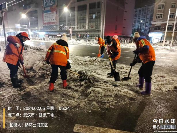 嚴寒還未消散,保障仍在行動。硚環公司嚴格落實24小時領導帶班執勤制度,備勤人員不畏嚴寒雨雪時刻都在路上,全力做好融雪防凍工作,發現問題即刻出動,永遠為維護良好城市運行和環境衛生秩序提供堅實保障。