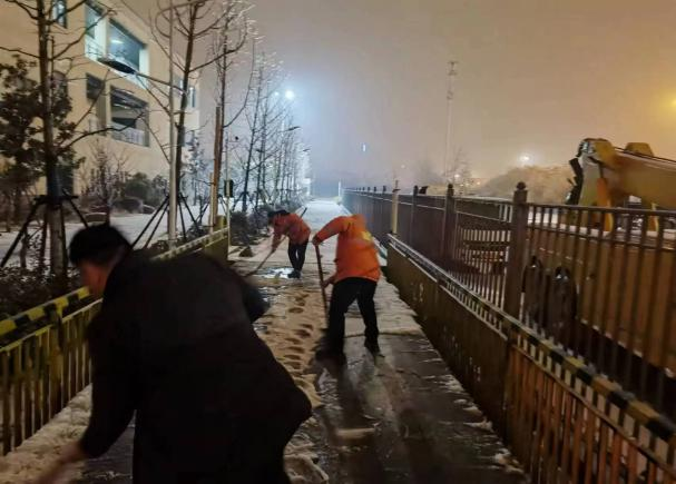 白天,硚環公司持續開展撒鹽除冰活動,針對容易結冰的非機動車道、人行道等拋灑融雪劑,利用鐵鍬、雪鏟、掃把等工具,對公園、商場出入口、臺階等人流量大的點位進行撒鹽清冰工作,為市民打造安全的生活環境。夜間則堅持“作業前看氣溫、看地溫、看路況”原則。當氣溫偏低時,停止道路灑水、沖刷作業,防止路面結冰現象,同時加大夜間巡查力度,做到發現問題及時解決,最大限度保障道路行車安全,避免交通事故發生,防范于未然。