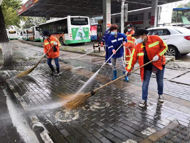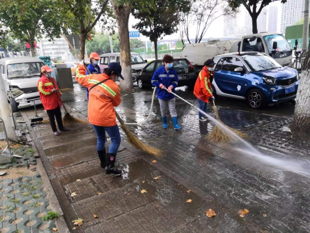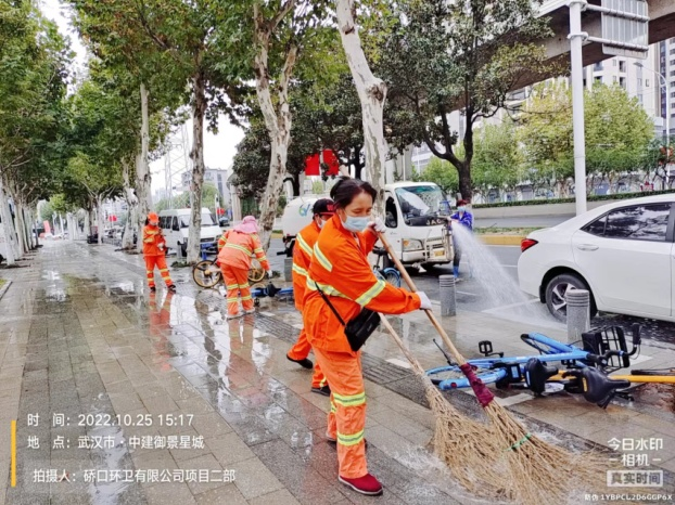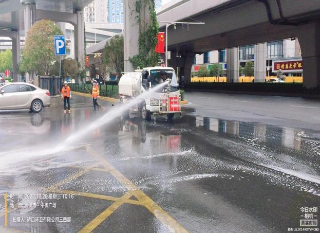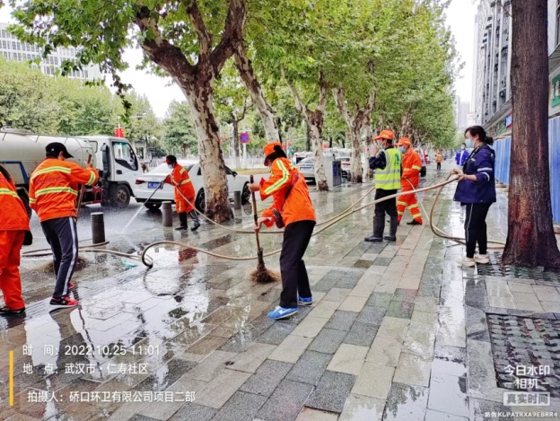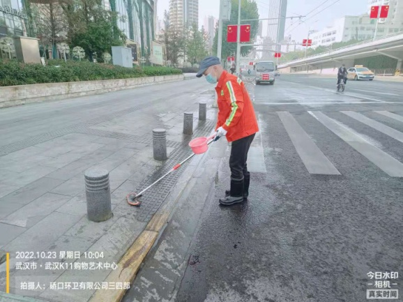 同時,做好疫情防疫,加大消殺工作的落實。每日針對垃圾容器、作業車輛、收集轉運點、大型垃圾轉運站、公廁點位進行嚴格的消殺工作,平均每日消耗消殺用品近200公斤。自10月20日至26日,硚環公司累計出動近3000人次,作業車輛180臺次,清掃面積共500萬方。