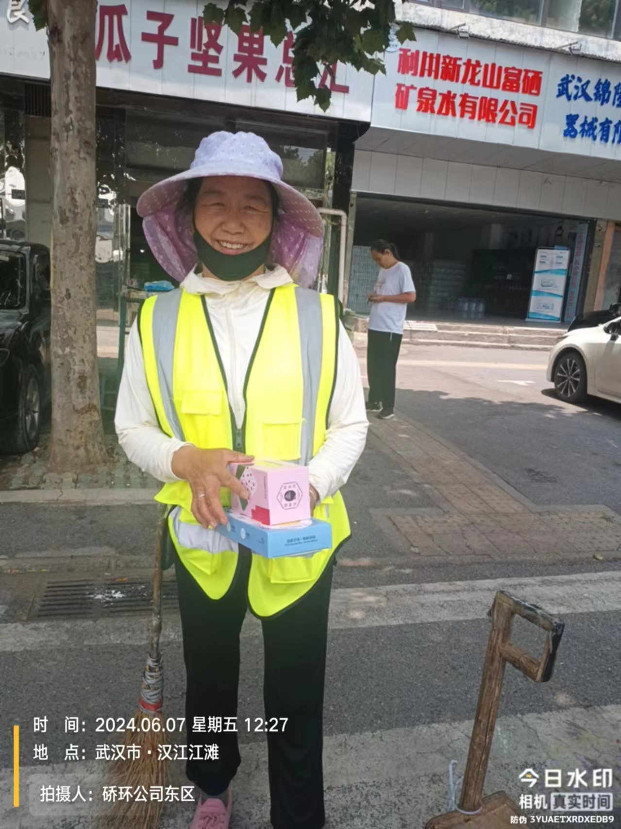 收到包裹著愛心和溫情的物資,每一位環衛工人臉上洋溢著幸福的笑容,清掃班長陳小美高興地說:“感謝社會各界對我們環衛工人的關心、關懷與關愛,我們一定會盡全力做好清掃保潔工作,為硚環公司爭創一流業績!